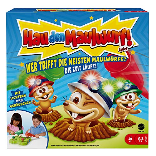Mattel Games GYN47 Hau den Maulwurf Kinderspiel mit Hämmern, Lichtern und Geräuschen, Mehrfarbig, für 1 oder 2 Spieler Spielzeug ab 4 Jahren