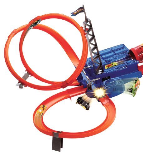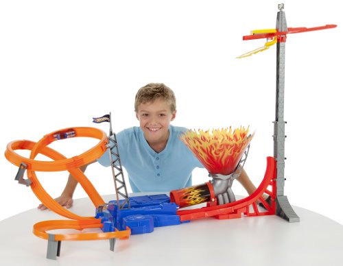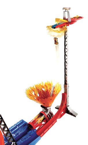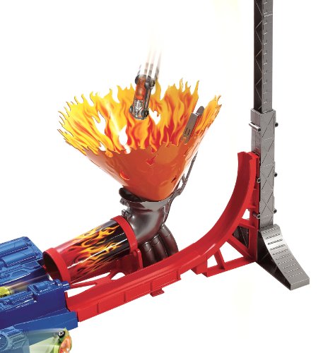 Auf dieser motorisierten Piste können die Fahrzeuge fliegen, rasen, aneinander geraten, vom Feuertrichter ausgespuckt werden oder zum gr oßen Sprung festsetzen. Inkl. 1 Hot Wheels Fahrzeug. Batterien erforderlich. Ab 5 Jahren.