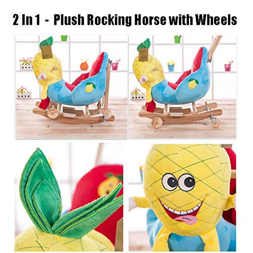 2 In 1 – Plüschschaukelpferd mit Rädern kann Rocker einfach und platzsparend zu einem Kinderwagen ohne Werkzeug umgebaut werden.Räder können auf Strand, Boden, Rasen laufen.Bitte beachten Sie, dass das Design nicht für die Oberfläche in der Nähe eines Schwimmbades geeignet ist.