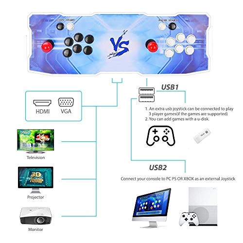 [SMOOTH ARCADE SYSTEM]: Die Box 11 von Pandora verwendet ein Familien-Arcade-System, mit dem Sie leicht eine eigene Arcade-Welt erstellen können. Es unterstützt zwei Spieler, die gleichzeitig die Spiele genießen, was den Benutzern ein echtes Arcade-Erlebnis bieten könnte. Der doppelte 8-Wege-Arcade-Joystick ist perfekt für alle Spiele.