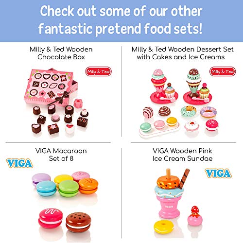 Entzückendes rosa und weißes Holzspielzeug über 9 wunderschön bemalten Holzkuchen und Keksen. Perfektes Spielnahrungsset statt jede Spielküche.