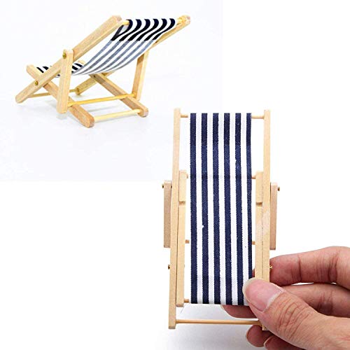 1/ 12 Maßstab Miniaturstuhl mit rotem und blauem Streifen Leinwand- Sitz, angebracht für Strand Kiosk, Shop, Meer oder Garten. „