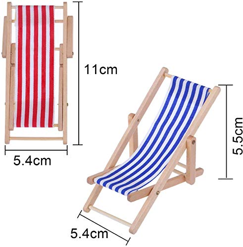 ♣ 2 Fetzen Miniatur Klappstuhl – 1/ 12 Maßstab Miniaturstuhl mit rotem und blauem Streifen Leinwand- Sitz, angebracht für Strand Kiosk, Shop, Meer oder Garten.