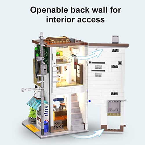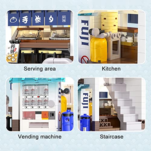 Artikelnummer: CADA C66006. Modular Street View Japanisch Brötchenhaus Bausatz. Wird mit USB-Lichtmodul geliefert, um das Schlafzimmer und das Innere des Ladens zu beleuchten. Kompatibel mit Lego.