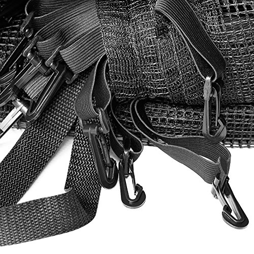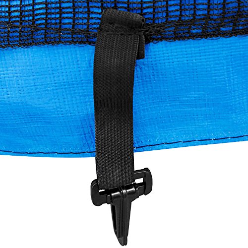 einfache Befestigung: Mit Karabinerhaken wird das Netz am Gestänge des Trampolins befestigt, dies sorgt sondern eine erhöhte Langlebigkeit.