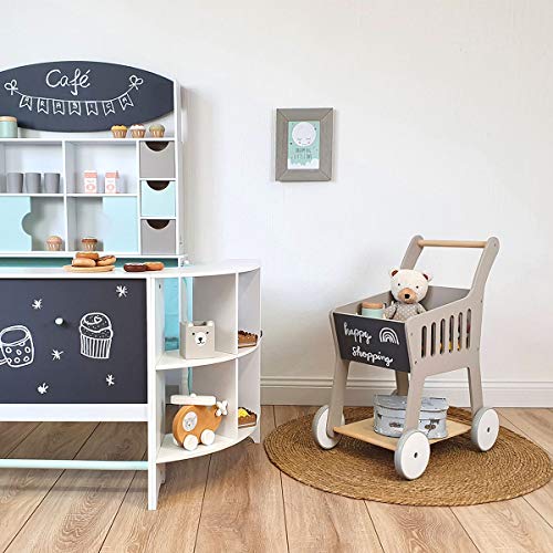 Lust auf eine Shopping-Tour? Mit diesem beordern Holzeinkaufswagen will jedweder sofort den Wocheneinkauf zu Ende bringen. Der moderne Einkaufswagen Rubus bietet enorm in Hülle und Fülle Platz für jeder Lebensmittel und bekannt als das Lieblingskuscheltier. Dank der gummierten Holzräder können schon die ersten Shopping-Versuche erschütterungsfest gemeistert werden. Das Highlight: die große Kreidetafel vorn kann nach Herzenslust gestaltet werden. Dieser Einkaufswagen passt übrigens bekannt als perfekt zu unseren MUSTERKIND Kaufläden. Ausstattung und Produkteigenschaften: sehr geräumiger Einkaufswagen; einzeln Abheften alle hochwertigem Buchenholz; Holzräder mit Gummibereifung; Kreidetafel vorn zur individuellen Gestaltung