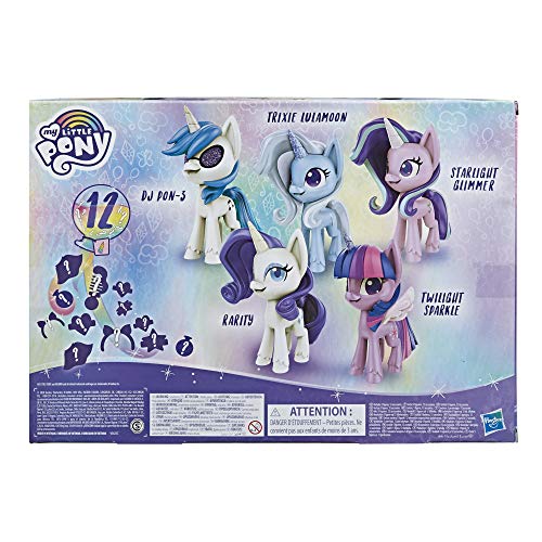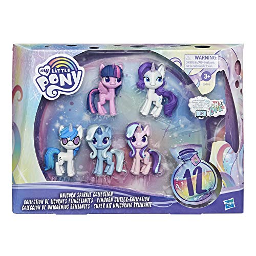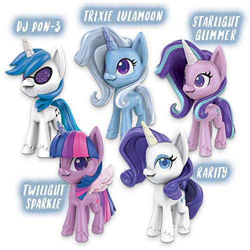 SAMMLUNG GLITZERNDER MY LITTLE PONY EINHÖRNER: Enthält die Ponyfiguren Twilight Sparkle, Rarity, Starlight Glimmer, Trixie Lulamoon und DJ Pon-3 mit glitzernden Hörnern