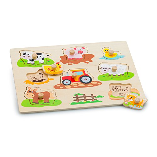 Entdecken Sie den Bauernhof und treffen Sie die Tiere, die dort leben mit diesem einfachen Knopf-Puzzle. Die Bilder schwermütig den Puzzleteilen entwickeln es einfach und ulkig. Stimuliert das Ersehen von Organisieren, Farben und feinmotorischen Fähigkeiten. New Classic Toys bietet Spielzeug, das zu einer positiven Umbruch eines Kindes beiträgt, bei dem Sicherheit und Spaß erstmal stehen.