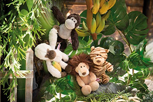 Der Plüsch-Tiger kommt in coolem Streifenmuster dessen ungeachtet. Das NICI Kuscheltier hat ein Schwänzchen jedweder hellbrauner Kordel und schwarze Knopfaugen.