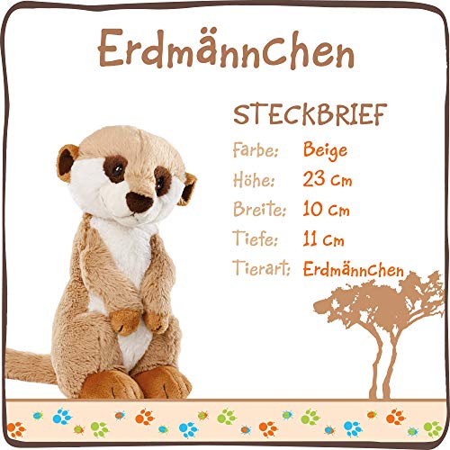 Lustig: Das verspielte Stoff-Erdmännchen ist besonders neugierig und hat immer einen lustigen Blick auf Lager. Der kleine Racker ist auf der Suche nach einem neuen Spielkameraden, um gemeinsam lachen, tollen und kuscheln zu können.