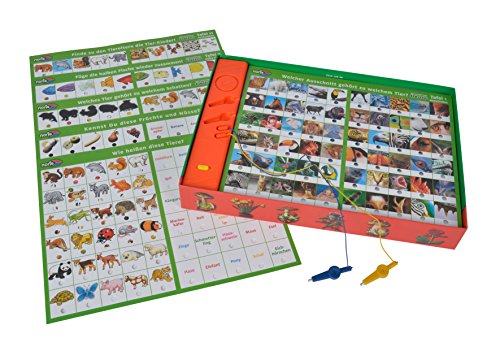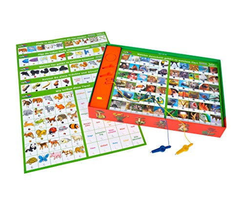 Lieferumfang – 12 unterschiedliche und kindgerechte Bildtafeln die das Lernen leichter machen, Electric-Konsole mit zwei Tastern