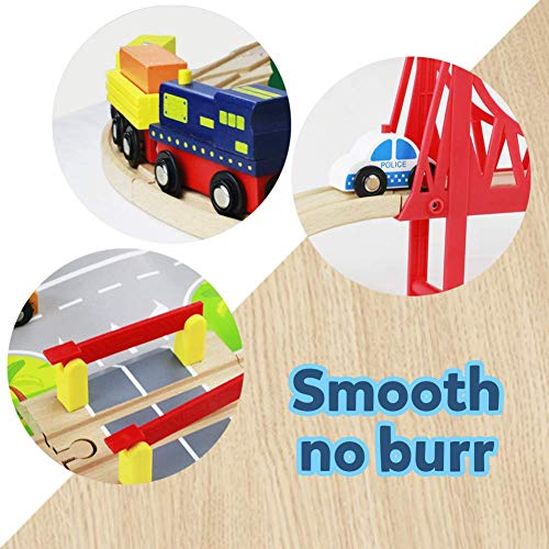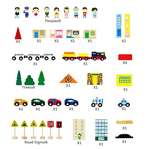 Verschiedene Spielmöglichkeiten -Holzschienen ist einfach zu montieren, Heranwachsender kann frei verschiedene Abhalten von Spuren und Dekorationen erstellen, um verschiedene Situationen zu erleben. Dieses Konstruktionsspielzeug bietet ein komplettes Spiel, mit dem Kinder ihre Kreativität blau entfalten können!