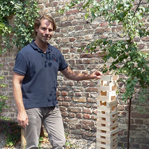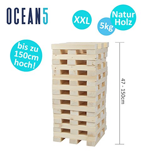 Ocean 5 XXL Riesen Wackelturm aus massivem Natur Holz, Jumbo Turm-Spiel, 60 Teile (21x4x2,5cm), bis zu 1,5m hoch Bauen mit dem Stapel-Geschicklichkeitsspiel