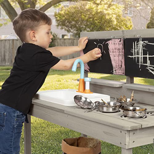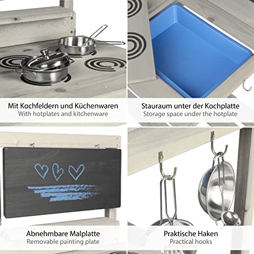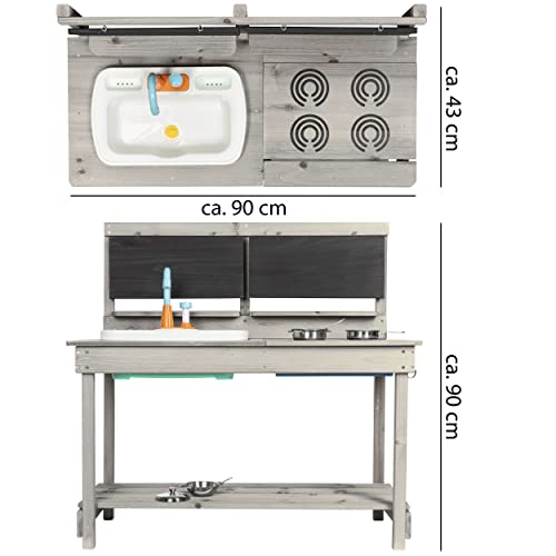 ONVAYA® Matschküche aus Holz | Grau | Outdoor Spielküche mit Waschbecken und schwarzer Tafel | Inklusive Stauraum in der…