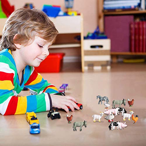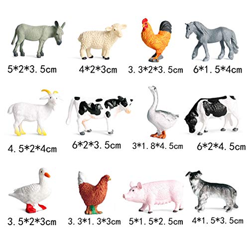 【Beinhaltet】 Dieses Farm Animal Model Set enthält 12 verschiedene Tiermodelle, darunter Schwein, Hund, Kuh, Schaf, Pferd, Ente usw. Alle von ihnen sind sehr schön mit lebensechter Form gemacht, können ein tolles Spielzeug für Kinder sein oder als Ausstellungsmodell auch eine tolle Dekoration im Raum.