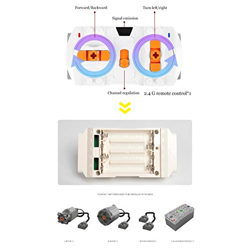 Maßstab: 1:17; Modellgröße: Länge 80 cm, Breite 30 cm, Höhe 46 cm. Mit Power Functions Set: 7 (1 XL und 6 L) Motoren, 2 Bluetooth-Lithium-Akku-Boxen, 1 Fernbedienung, 2 Verlängerungskabel, 1 Aufkleber. Wird über eine 2.4G-Fernbedienung oder eine Bluetooth-App gesteuert