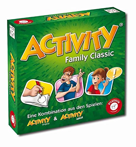 Activity Family Classic ist eine Kombination von kreativen Spielelementen. Es geht darum Begriffe so zu Bearbeiten, darzustellen oder zu zeichnen, dass sie von den Mitspielern erraten werden. Dabei können Worte abgesondert und so leichter vermittelt werden. Hände und Füße werden als Hilfsmittel eingesetzt. Activity macht narrisch massenhaft Spaß. Man kann es ab drei Spielern bis zu großen Gruppen von 16 Personen spielen.Diese Activity Edition ist speziell für Familien nach Maß. Wer einen „Regenschirm“ im „Raumschiff“ auf dem „Luftverkehrszentrum“ vergessen hat, oder wer im „Papierkorb“ vergeblich das „Computerspiel“ sucht, sollte Activity Family Classic spielen. Das macht garantiert mehr Spaß. Hände, Füße und die Lachmuskeln kommen erschütterungsfest nicht zur Ruhe! Spielablauf: Die einzelnen Spieler bzw. Mannschaften würzen durch geschicktes Abbilden, Bearbeiten, Zeichnen bzw. Erraten der Begriffe auf der Spielstrecke vorwärts zu kommen. Das Team, das zuerst das Zielfeld erreicht, gewinnt.