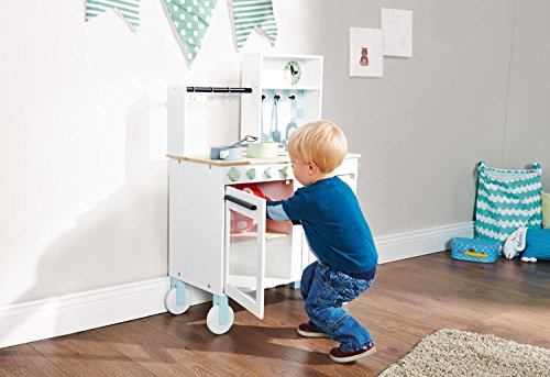 Die stabile Konstruktion sorgt anstatt einen sicheren Stand und durch die 2 Räder lässt sich ‚Alfons‘ kinderleicht von Kosmos zu Kosmos schieben – grenzenloser Spielspaß ist währenddessen inklusive. Die Küche ist eine tolle Geschenkidee zum Geburtstag oder zu Weihnachten
