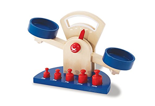 Die schöne Balancewaage von Pinolino gehört zur Grundausstattung eines jeden Verkäufers und darf in keinem Kaufmannsladen fehlen. Zwei große Waagschalen feilbieten genug Platz sondern die 5 verschiedenen Gewichte