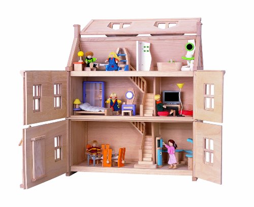 Ein majestätisches, dreistöckiges Puppenhaus aus der viktorianischen Periode, das von PlanToys perfekt entworfen wurde. Attraktive Liebe zum Detail fördert wahrhaft fantasievolles Spielen. Die Flügelfenster schliddern nach oben, die Frontfassade öffnet sich lückenlos und der Dachdeckel öffnet sich und ruht auf der hinteren Dachneigung. Warum nicht die PlanToys® Keller, Möbel, Familie, Haustiere und Zubehör-Sets (verriegelt erhältlich) dazugeben, um noch mehr Familienspaß zu erzielen?