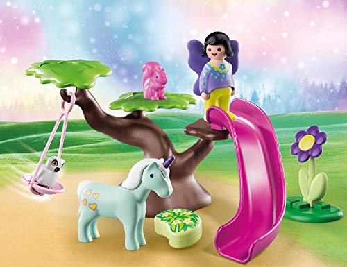 Spielerische Entdeckungsreise: PLAYMOBIL 1.2.3 Feenspielplatz mit Schaukel, Rutsche, Baum und einer niedlichen Fee – ohne verschluckbare Einzelteile