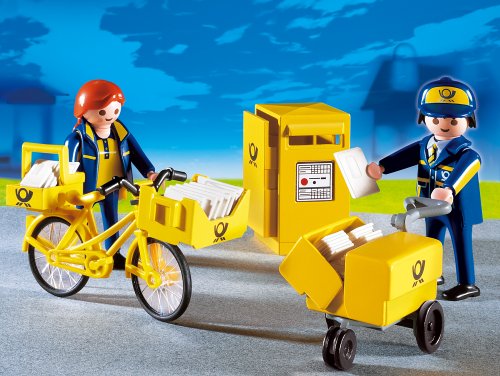 Mit aufklappbarem Briefwägelchen, entleerbarem Briefkasten ansonsten 2 abnehmbaren Briefkörben am Fahrrad.