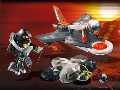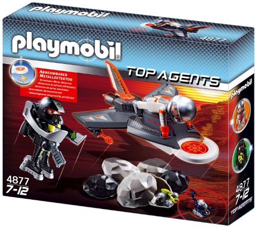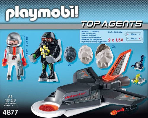 4877 Agenten-Detektorjet unter Zuhilfenahme von funktionierendem Metalldetektor (benötigt 2 x 1,5 V Micro-Batterien) zum Aufspüren von Robotertierchen.