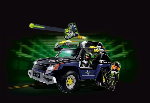 4878 Robo-Gangster SUV RC-fähiges Fahrzeug mit Satellit, ausklappbarer Satelliten-Abschussrampe, Flügeltüren und Schnippgeschossen. Aufrüstbar mit Spitzeldienst Kameraset (Art. 4879).