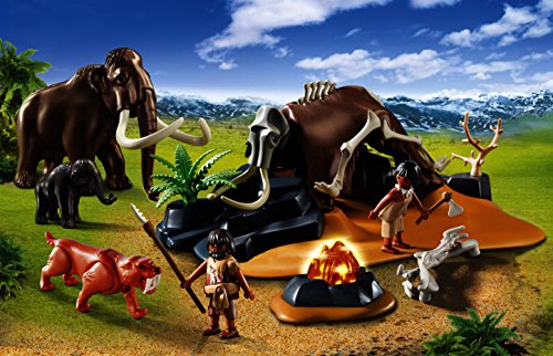 5087 Steinzeitlager m.Feuer (benötigt 2 x 1,5V Micro-Batterien (AAA) / Mitnichten enthalten).