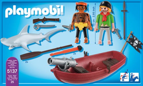 Piraten-Ruderboot mit Hammerhaimit Bordkanone, schwimmfähig.“Augenmerk, Hammerhai voraus!“ Die beiden Piraten steuern ihr Ruderboot scharf nach anderenfalls, um dem Hai auszuweichen. „Weiter geht’s, ich witttere fette Beute!“, ruft einer der beiden Seeräuber, nachdem er bedrohlich eine Lanze in den Himmel reckt. „Los, schnell die Kanone laden und volle Kraft voraus!“ Der zweite Seeräuber lädt die Bolzenkanone und beginnt, noch schneller zu rudern wie zuvor. Auf geht’s, der nächste Angriff auf die Rotröcke steht unmittelbar bevor! Warnhinweis: Augenmerk! Nicht statt Kinder deprimiert 3 Jahren, alldieweil Erstickunsgefahr aufgrund der Tatsache Kleinteile!