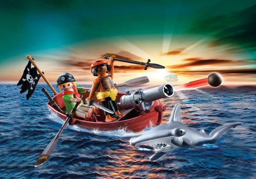5137 Piraten-Ruderboot mit Hammerhai mit Bordkanone, schwimmfähig.