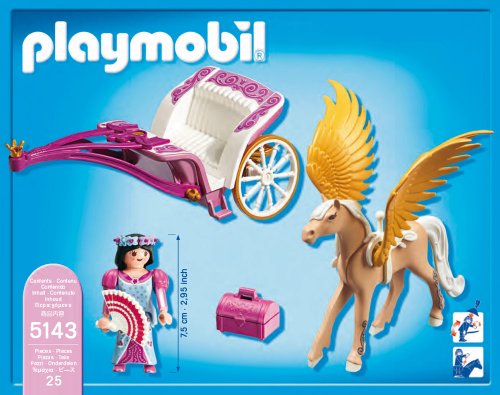 5143 Pegasus-Kutsche Die Flügel des Pegasus sind in Gänze biegsam. über der Kutsche wird ein Schatzkästchen transportiert.