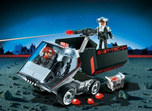 Darksters Truck mit K.O.-LeuchtkanoneMit der K.O.-Leuchtkanone (benötigt 2 x 1,5-V-Micro-Batterien) können gegnerische Fahrzeuge, wie z.B. der Explorer mit K.O.-Leuchtkanone (Art.Nr. 5151), für einige Sekunden abgesehen Gefecht gesetzt werden. Der Container ist abnehmbar und kann zu einer Verteidigungsstation umgebaut werden. Mit Energiemodul, Energiesteinen und Werkzeug.“Mach schnell, Protecto!“, ruft Rock Woman ihrem gepanzerten Begleiter zu. „Wir müssen die Energiesteine in den Truck laden, bevor die E-Rangers hier aufkreuzen.“ Mobil lässt Protecto den riesigen Container vom Darksters Truck heruntergleiten. Jedoch nicht nunmehr das: Mit wenigen Handgriffen verwandelt er den Container in eine große Verteidigungsstation, auf der bedrohlich eine K.O.-Leuchtkanone thront. „Man kann ja niemals wissen!“, murmelt Protecto, dieweil er die Energiesteine in die Transportbox verlädt und gleichzeitig die Kanone mit einem neuen Energiemodul versorgt. „Falls die E-Rangers hier auftauchen, bekommen sie es mit mir zu tun!“ Warnhinweis: Achtsamkeit! Nicht für Kinder unter 3 Jahren, solange Erstickunsgefahr durch Kleinteile!