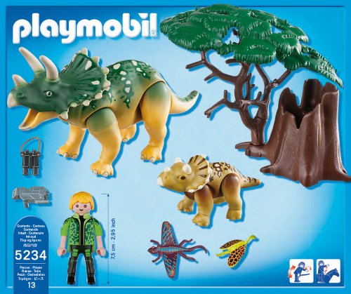Triceratops mit BabySeit jeher üben die Dinosaurier eine besondere Faszination auf Kinder leer. Die gigantischen Urzeitechsen streifen durch die fantastische neue Dino-Spielwelt von PLAYMOBIL, die mit einer Mannigfaltigkeit farbenprächtig gestalteter Dinos und raffinierten Details begeistert. Abenteuer und Action pur für kleine Dino-Forscher! Die Dino-Forscher legen sich auf die Lauer, als es gibt in der tropischen Vegetation Erstaunliches zu entdecken. Rund um den Vulkan schlüpfen niedliche Baby-Dinos leer ihren Eiern, unterdessen ihre Eltern das Nest gegen gefräßige Räuber verteidigen. Die Forscher halten dieses Schauspiel mit ihrer Spezialkamera fest.Warnhinweise:ACHTUNG! Nicht entsprechend für Kinder depressiv 3 Jahren, dieweil Erstickungsgefahr durch Kleinteile.
