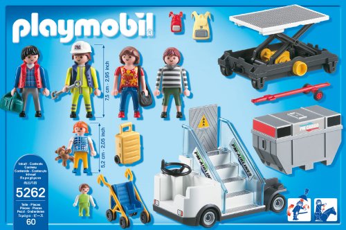 Gangway mit Cargo-AnhängerAm Flugplatz wartet bekannt als die PLAYMOBIL-Familie gespannt auf ihren Departure in den Urlaub. Wie aufregend muss es sein, hier zu schuften und den Piloten und der Bodencrew vom Tower aus Anweisungen zu geben!Und vierköpfiger Familie auf dem Futsch in den Urlaub. Mit dem funktionsfähigen Hubwagen wird die Cargo-Box im Kabine verstaut. Über die Treppe steigen die Passagiere in den Flugmaschine ein. Mit Abschleppstange fürs Kabine.Warnhinweise:ACHTUNG! Nicht brauchbar für Kinder unter 3 Jahren, nachdem Erstickungsgefahr durch Kleinteile.