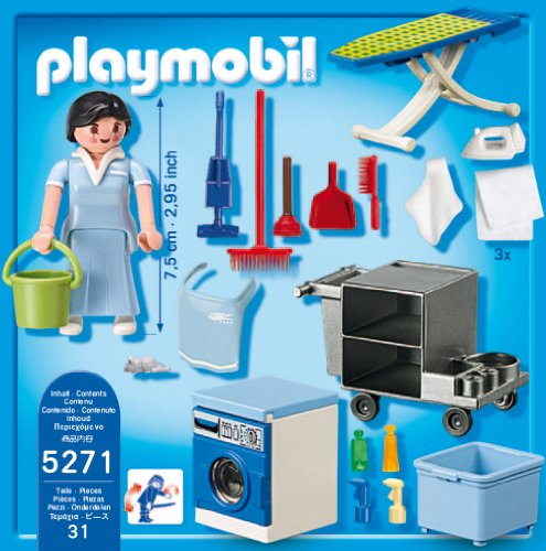 ReinigungsserviceHält die Zimmer u. a. die Wäsche fair sauber mit Hilfe von funktional ausgestattetem Putzwagen, befüllbarer Waschmaschine u. a. klappbarem Bügelbrett.Warnhinweise:ACHTUNG! Nicht angebracht statt Kinder herunten 3 Jahren, zumal Erstickungsgefahr mit Bezug auf Kleinteile.