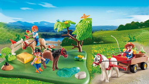 5457 Jubiläums-KompaktSet Ponykoppel + Ponywagen Die Blagen können gen den Ponys reiten.
