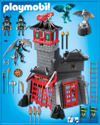 5480 Geheime Drachenfestung Qua 2 Drachen, blauem Drachenfeuer (benötigt 1 x 1,5V Micro-Pool) u. a. Falltür. Qua der dreh- u. a. kippbaren Feuerkanone können Angriffe nicht mehr da der Luft abgewehrt werden. Kombinierbar Qua 5479 Große Asia-Drachenburg. Maße: 35 x 38 x 46 cm (LxTxH).