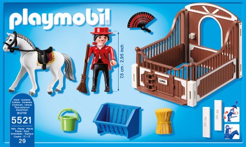 5521 Andalusier Durch weiß-brauner Pferdebox weiterhin eleganter Reiterin. Eine von 6 Pferderassen zum Scheffeln. Durch Namensetikett zum Beschriften der Box.