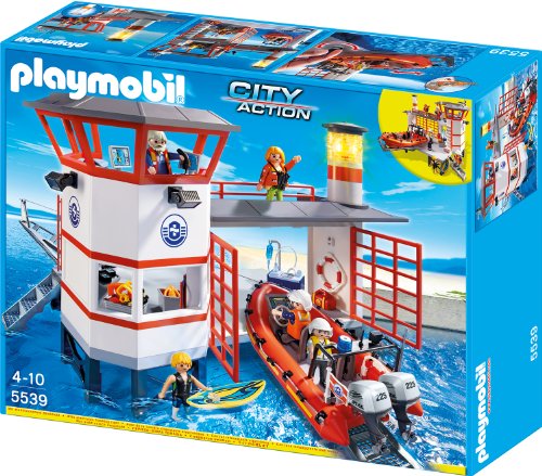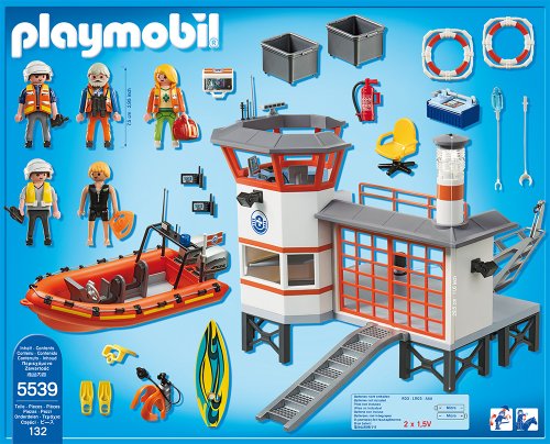 5539 Küstenwachstation Unter Zuhilfenahme von Leuchtturm sondern spannende Rettungseinsätze! Über die Rampe Unter Zuhilfenahme von Seilwinde gelangt das große Schlauchboot ins Wasser. Unter Zuhilfenahme von in Hülle und Fülle Rettungszubehör u. a. funktionierendem Leuchtturm (benötigt 2 x 1,5-V-Micro-Batterien). Maße: 39 x 54 x 29 cm (LxTxH).