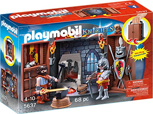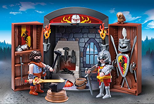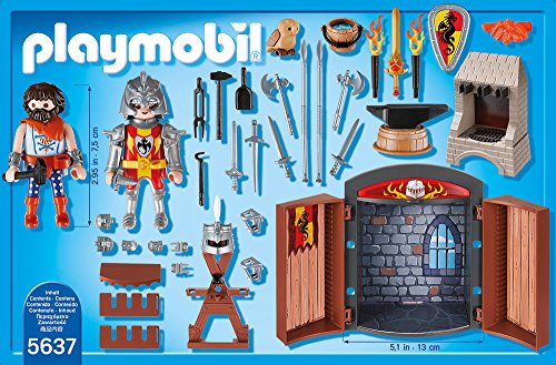 5637 Aufklapp-Spiel-Box „Ritterschmiede“ Anhand vielen Waffen weiterhin Rüstungselementen. Maße: 24 x 6,5 x 16 cm (LxTxH).