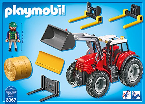 6867 Riesentraktor durch Spezialwerkzeugen.Der bewegliche Frontlader kann durch Schaufel, Gabel anstatt Rundballen oder Gabelstaplerplatte ausgestattet werden. Am Heck können zusätzlich das Räumschild oder die Anhängekupplung befestigt werden. Maße je nach Gadget: 31-40 x 12 x 14-22 cm.