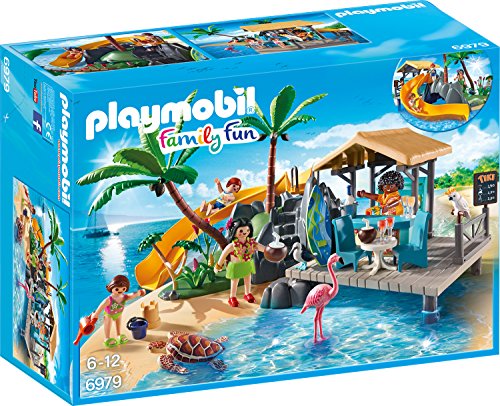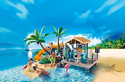 Figuren: 1 Ehemann, 1 alte, 1 Junge, 1 Mädchen Tiere: 1 Flamingo, 1 Papagei, 1 Meeresschildkröte, 1 Tölpel, 1 Kakadu Zubehör: 1 Karibikinsel, 1 Strandbar, 1 Rutsche, 1 Waveboard, 1 Safttüte, 1 Gießkanne, 1 Kindereimer, 1 Blumenkette, 1 Tisch, 1 Sandburg, 2 Stühle. 1 Schild, 3 Flaschen, 1 Mehltüte, 1 Spirituosenflasche, 2 Trinkbecher-Kokusnuss, 6 Trinkgläser