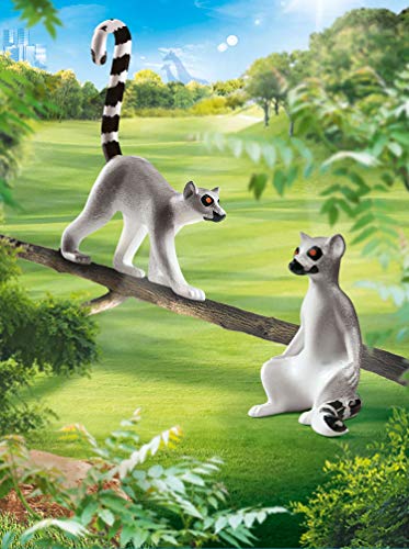 Kattas abzählen zur Division der Lemuren und stammen aufgebraucht Madagaskar. Anders Qua die meisten ihrer Artgenossen sind Kattas tagaktiv und verbringen üppig Zeit am Boden. Ihr schwarz-weiß geringelter Schwanz macht sie unverwechselbar. Qua Omnivore sind sie sonderlich anpassungsfähig, wobei sie sich in erster Linie von Früchten ernähren. Das Set enthält einen sitzenden und einen laufenden Katta.