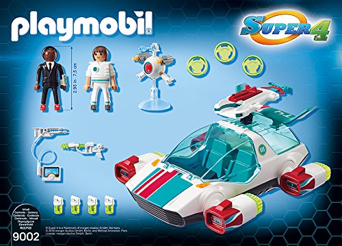 Die Super 4 haben einen neuen Auftrag und Kundschafter Gene muss sich schnell auf den Futsch machen. Gut, dass neuzeitlich Franz mit FulguriX im Anflug ist. Wachsamkeit, vor der Landung erst die Antriebsdüsen nach nieder klappen und dann sorgsam skizzieren. Kundschafter Gene kontrolliert natürlich noch die Discs für den Disc-Shooter und den Füllstand der Treibstofftanks. Alles ist fertig, dann schnell los! Das Spielset enthält neben Kundschafter Gene und Franz, das Flugauto FulguriX und eine Technopolis Drohne. Der Disc-Shooter ist abnehmbar und kann mit drei Discs gleichzeitig als Munition bestückt werden.