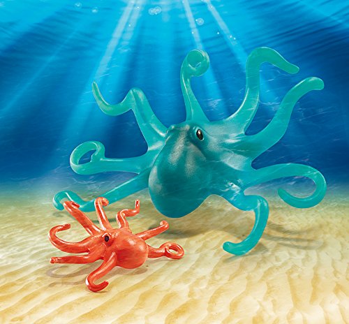 große Krake: Karibikblau / Weiß; kleine Krake: Rot / Hellgelb
