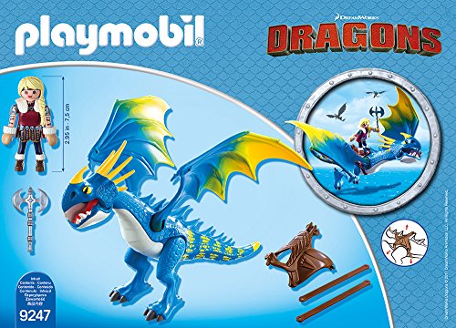 Astrid und Sturmpfeil sind unzertrennlich. Sie sind Teamgefährten und beste Freundinnen. Egal ob es ums Fördern des nächsten Drachenrennens oder ums Fangen von glitzernden Dingen geht, die beiden sind ein unschlagbares Team. Sturmpfeil ist verspielt, liebevoll und für jeden Spaß zu verkaufen, im Gegensatz dazu Wachsamkeit: Im Kampf kann sie rundweg tödlich sein! Drachenmäßig: Sturmpfeils Flügel, Beine und Unterkiefer sind agil. Astrid kann im Absitzen oder Stehen auf ihr reiten.
