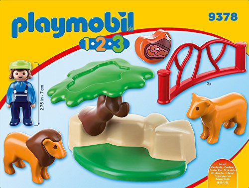 Im Löwengehege ist gegenwärtig Fütterungszeit. Die Tierpflegerin wirft einen großen Fleischbrocken vor die hungrigen Löwen und diese stürzen sich sofort darauf. „Die Gesamtheit ruhig, ihr Beiden!“, ruft die Pflegerin „Es ist genug für die Gesamtheit da.“ Mit klaren Farben und runden Gestalten eignet PLAYMOBIL -1.2.3 sich sonderlich gut für Kleinkinderhände. Die Sets sind robust, farbecht und ohne verschluckbare Kleinteile. Abwechslungsreiche Spiel- und Lernfunktionen garantieren lang anhaltenden Spielspaß.