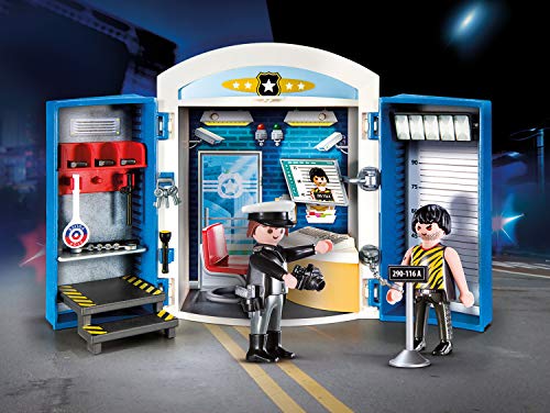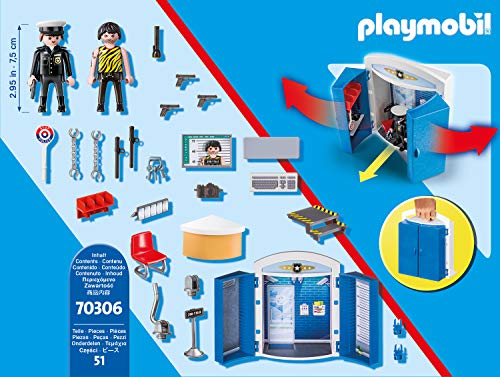 Spielspaß unterwegs: PLAYMOBIL Spielbox In der Polizeistation mit Polizist, Häftling und Zubehör für detailgetreues Nachspielen einer Verhaftung