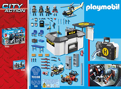 Spielspaß für kleine Polizeifans: PLAYMOBIL Große Mitnehm-SEK-Zentrale mit Helikopter, Motorrad, Quad, 3 Polizisten, 1 Ganove und mehr zum Nachspielen